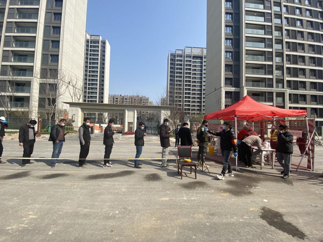 自2022年3月28日徐州发生新一轮疫情后,中建铁投集团徐州华润项目部组织管理人员及工人,联合社区开展每日核酸检测,该项目部、施工现场及生活区原有三处出入口,在疫情发生后,现场实行封闭管理施工,施工现场与生活区合并为同一管控区,人员禁止出入,日常用品及食物菜品,每日均由唯一出入口消杀后方可入场使用。在封闭管理期间,为关爱广大工友,该项目部每晚组织工友们在项目空地上播放电影及音乐,为大家适度解压。