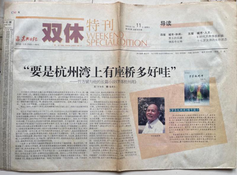 《嘉兴日报》刊发作者近照与《梦落杭州湾》封面介绍