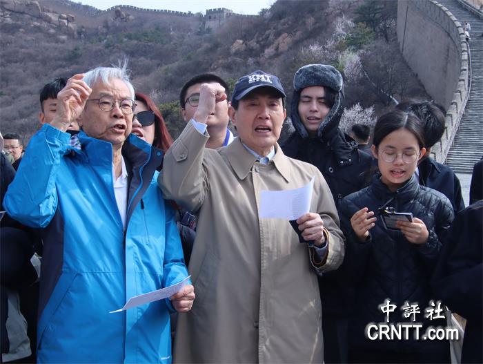 马英九在长城上唱“长城谣”不禁潸然泪下。(中评社 林艶摄)