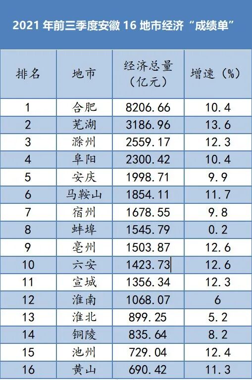 安徽16地市2021年前三季度经济“成绩单”,近日揭晓!