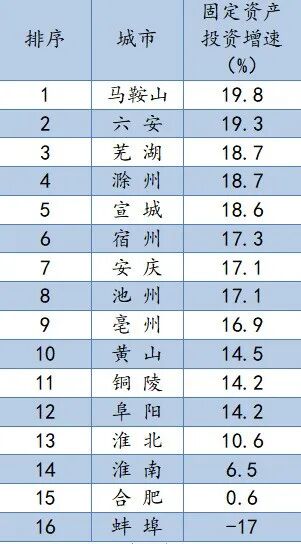 具体来看,马鞍山以19.8%的增速居全省第一位,六安以19.3%的增速紧随其后;芜湖、滁州的增速同为18.7%。