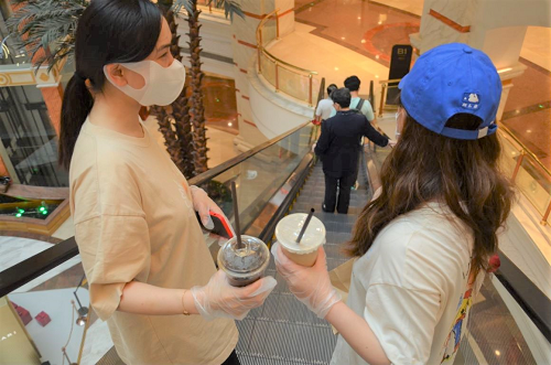 上海环球港自开业以来,进店的年轻人,都有一个共同特征——人手一杯甚至两杯奶茶或咖啡,边喝边逛。上海环球港此次恢复运营,很多甜品饮料品牌是“复工即爆单”,生意好得出奇。有一家网红甜品店,店员们一直很忙碌,店长说,日均销售量比以前猛增,爆款产品更是不时脱销。