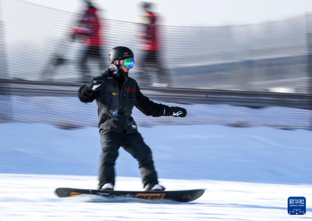当日是元旦假期的第一天,宁夏银川市许多市民来到滑雪场,畅享冰雪运动带来的欢乐。