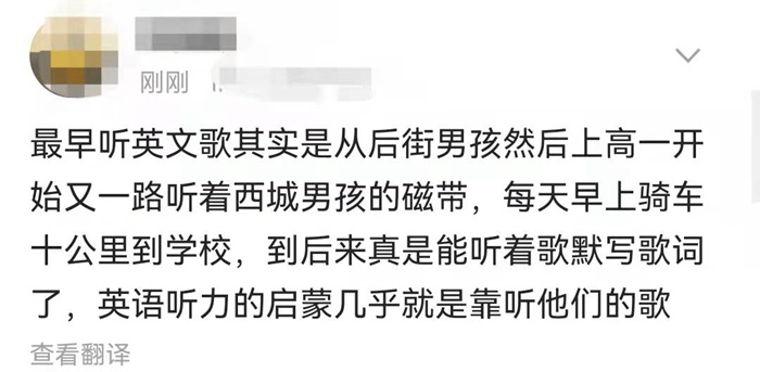 “当年初中英语老师,每逢课间就放他们的MV。”