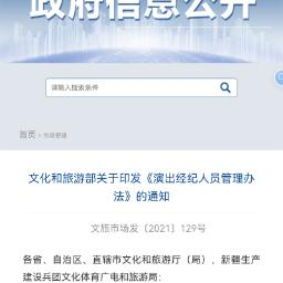 文化和旅游部:国家对演出经纪人员实行职业资格认定制度