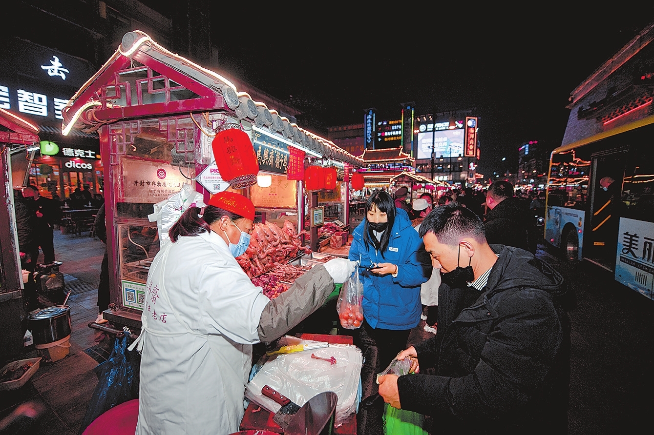 2月23日晚,抑扬顿挫的叫卖声又在开封鼓楼广场、西司夜市和大庆路夜市响起,临时闭市歇业48天的开封夜市再次复市。